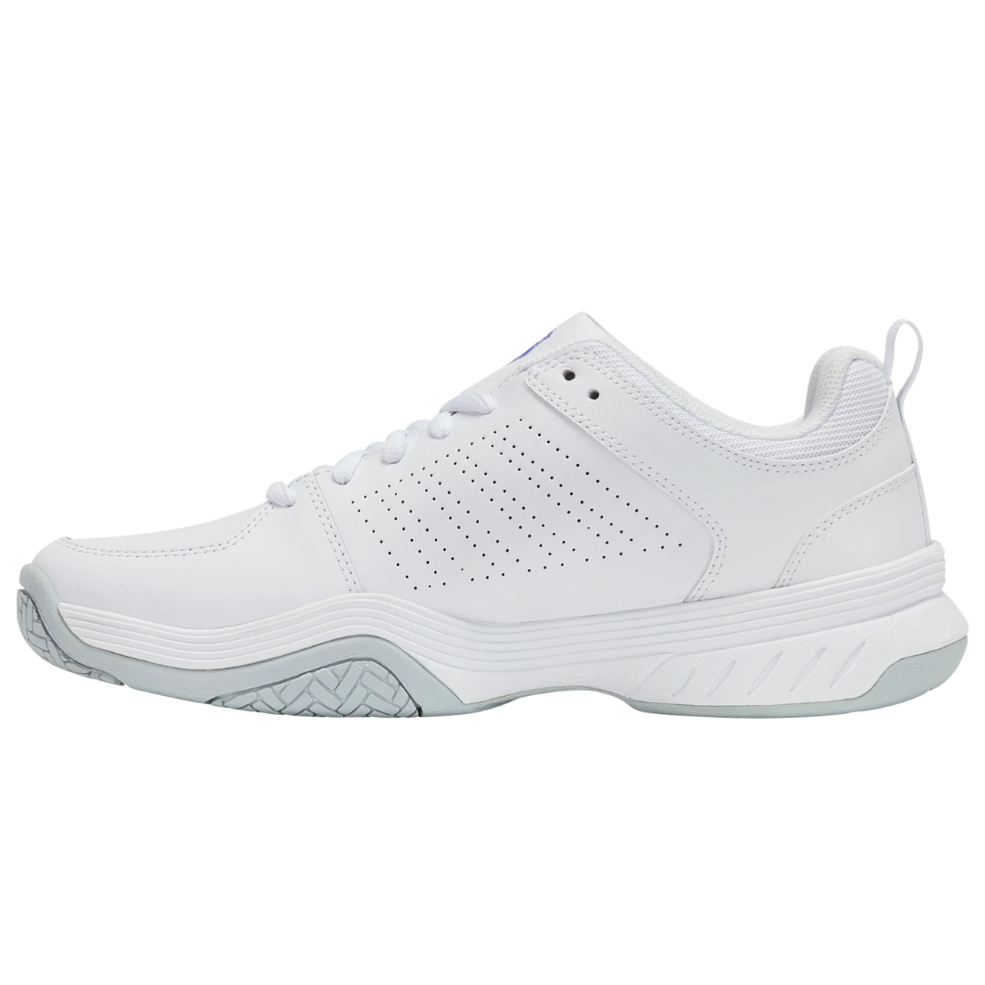 K-Swiss Court Express All Court er en all-around tennissko designet til spillere, der ønsker lethed, stabilitet og alsidighed. Den kombinerer slidstærke materialer med støddæmpning og giver samtidig en fleksibel og responsiv pasform.